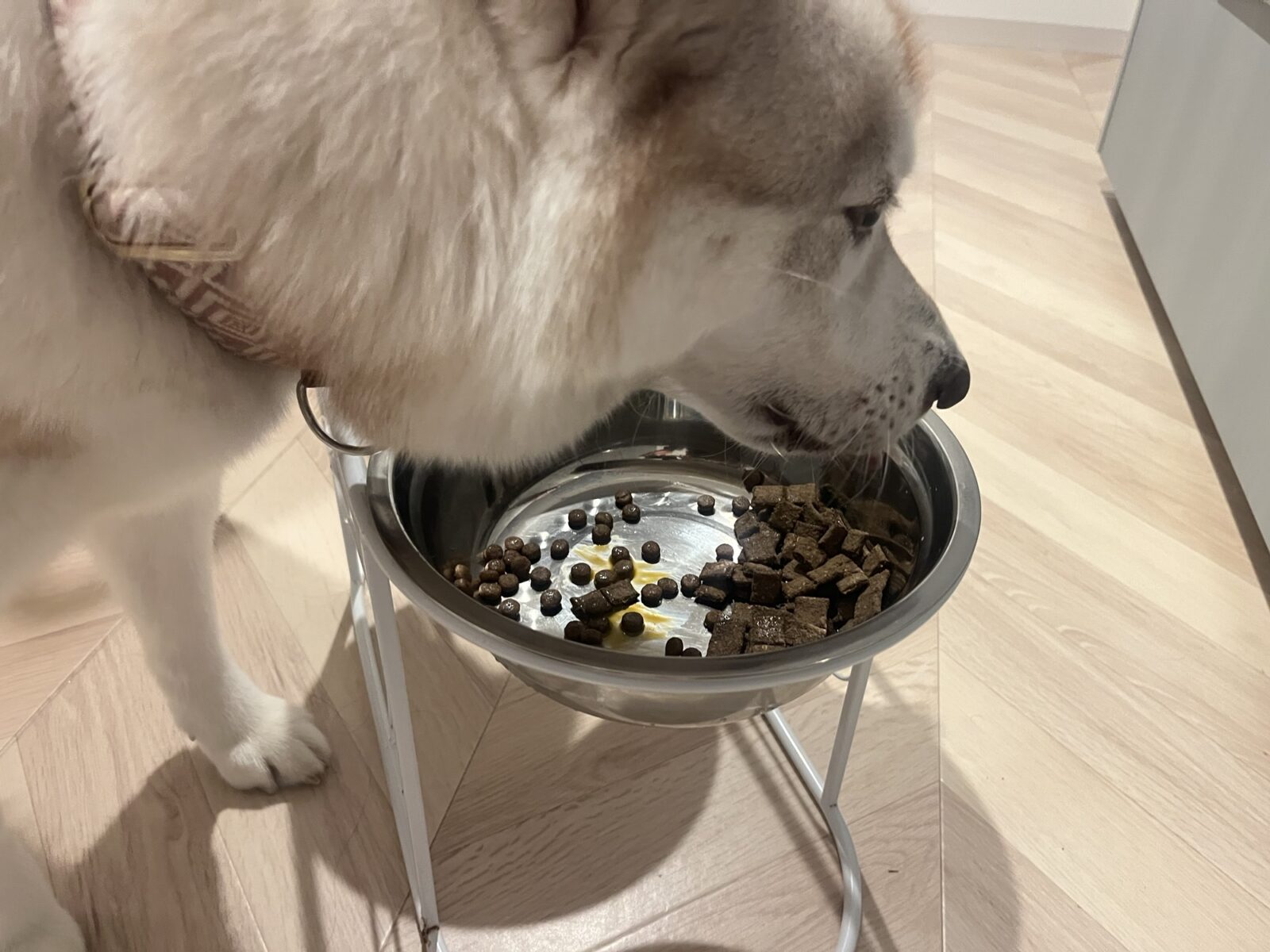 イリーナは食いしん坊なので基本的によく食べるんですが、グランツは特に香りが良いのか、フードボウルに入れた瞬間から興奮気味でした。